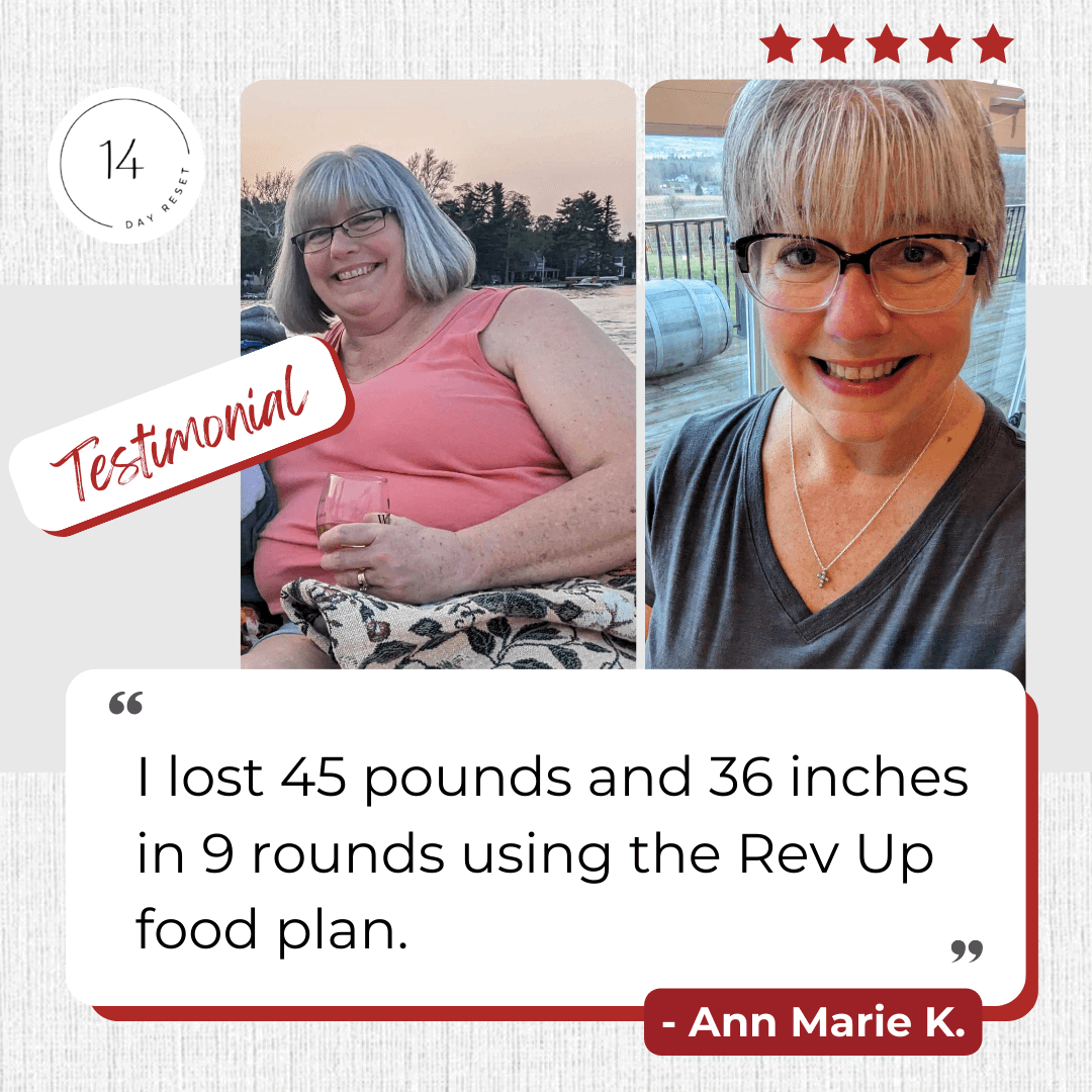 Have met my goal weight. Love the community and Rev Up Coaches. Both are phenomenal!